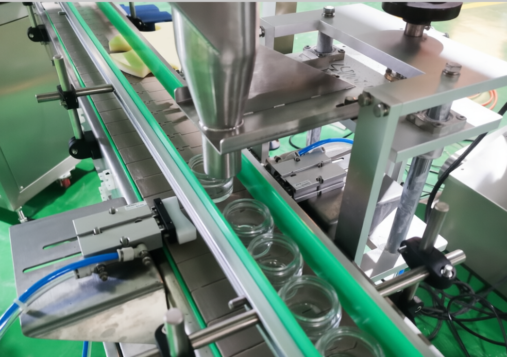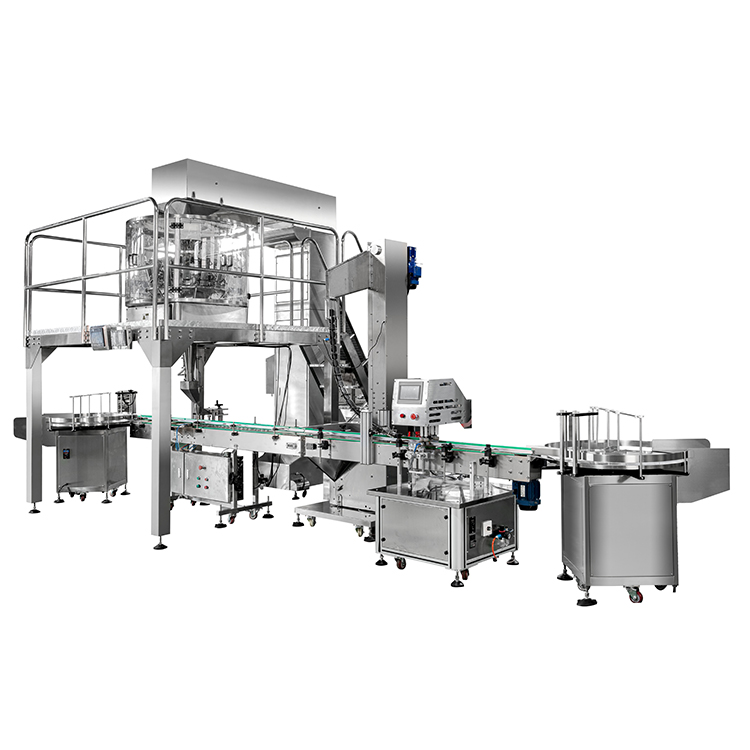 - 盖子(通常是儿童安全盖)由盖子分类机和放置器分类并放置到罐子上,然后将盖子 将其拧到罐子上。